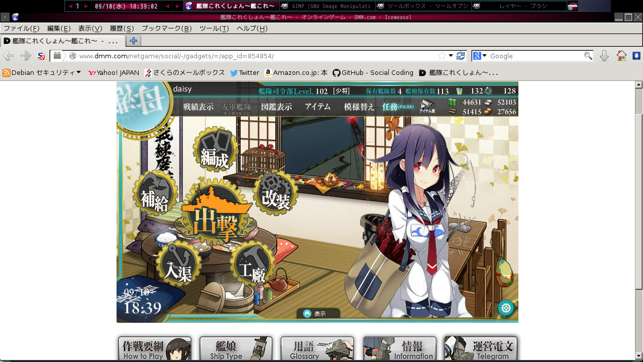 2014/08/29 のメンテナンス後、Linux と FireFox(または Iceweasel)の組み合わせでは艦これに接続出来なくなってしまいました。これは Adobe で配布されている Linux版Flash Player の最終版が 11.2 で、セキュリティアップデート以外での更新が停止して久しい事が原因のようです。そこでここに、freshplayerplugin というラッパーを通して Linux版Google Chrome向けの最新版の pepperflash を使って艦これに接続する方法のメモを残しておきます。ざっくり言うと freshplayerplugin を使って、FireFox や Iceweasel に対して PPAPI の Flash Player を従来の NPAPI の Flash Player のように見せかけてやりとりさせて、艦これを遊べるようにしようという事です。